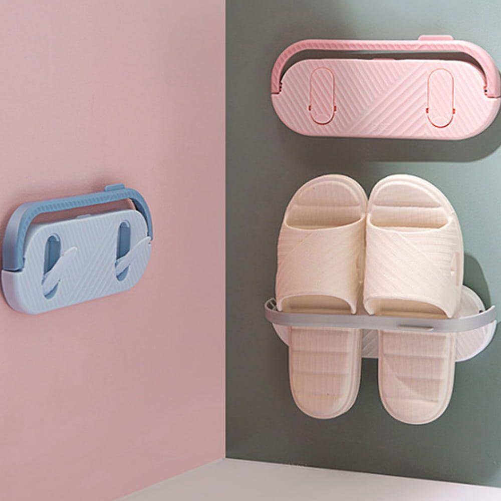 Folding Slippers Holder Shoes Hanger Adhesive Storage Towel Bathroom Slippers Wall Mounted Shoe Organizer