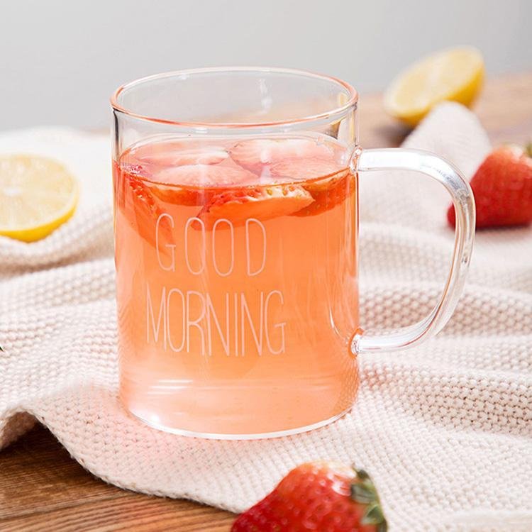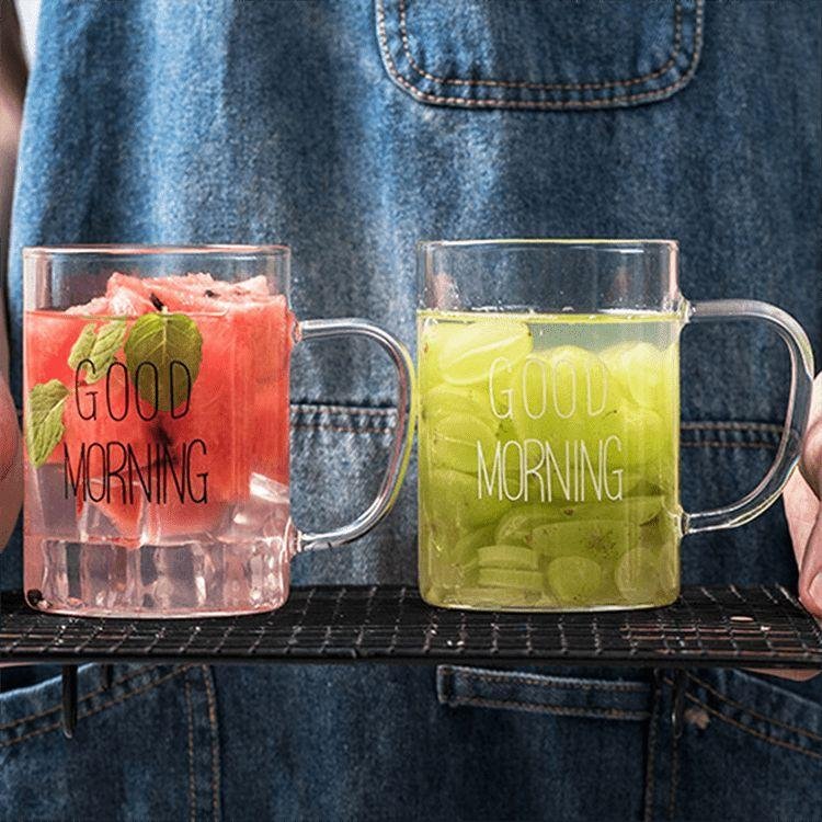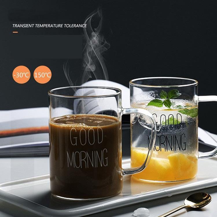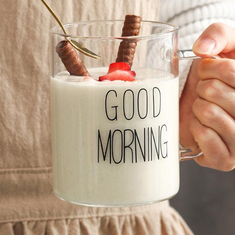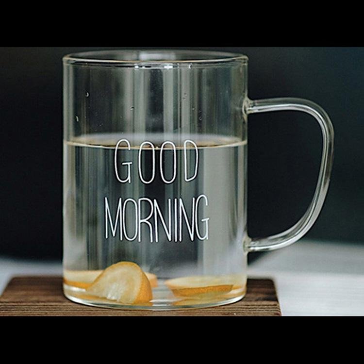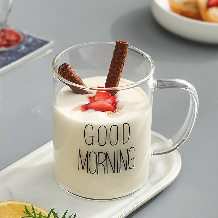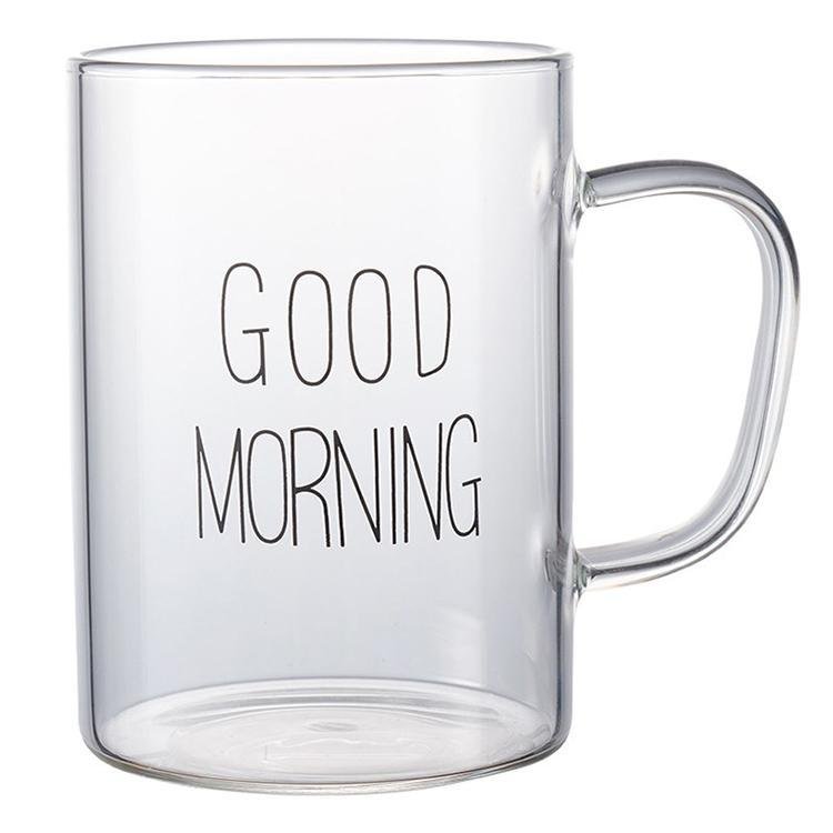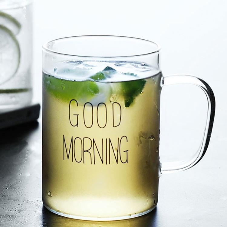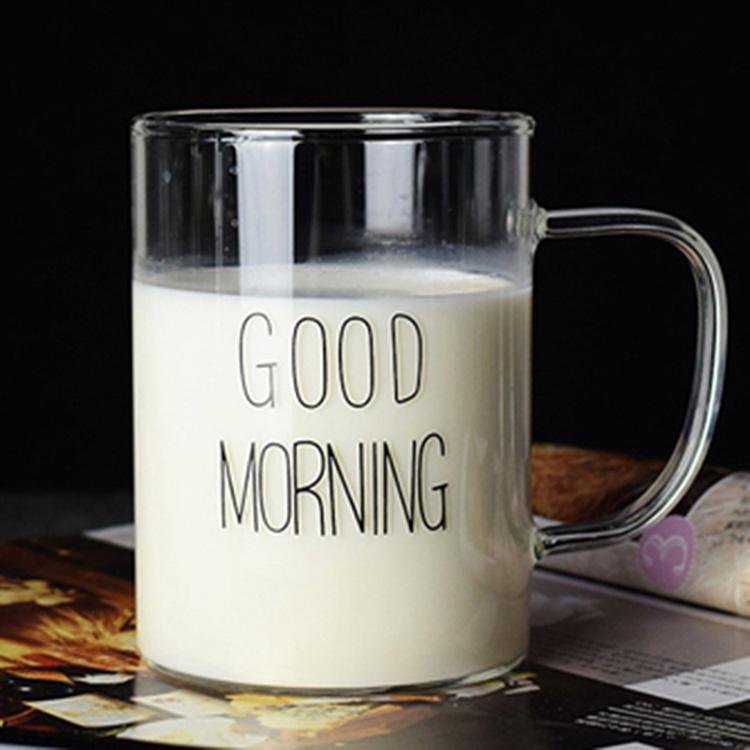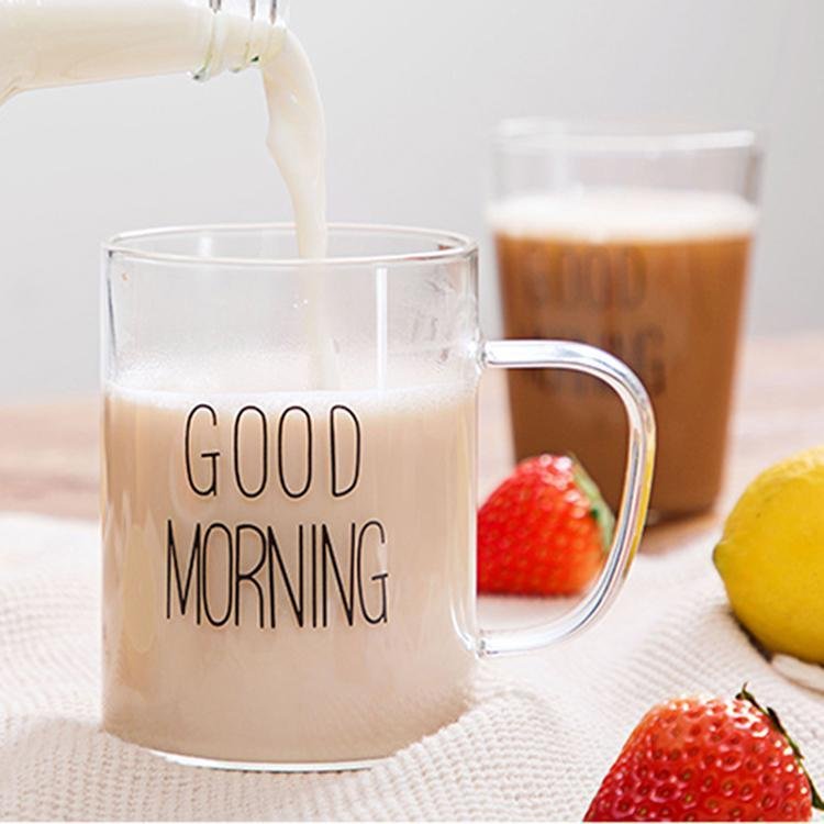 1 Piece 450ml Juice Water Cup Creative Glass Coffee Milk Mug Good Morning Breakfast Cup Letter Printed Mugs For Gift